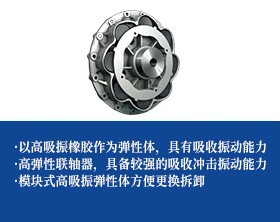 采用高吸振的橡胶作为弹性体,具有很高的吸收振动能力,具备较强的吸收冲击振动能力(船舶专用);